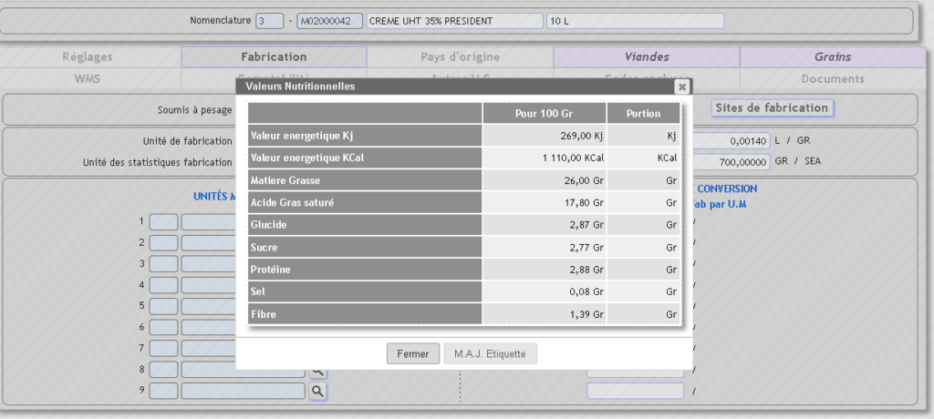 Imprimez vos étiquettes avec la liste des ingrédients, les valeurs nutritionnelles, les allergènes, les conseils,…..