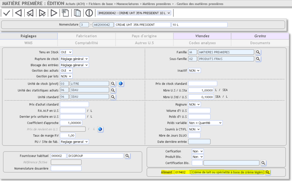 Les valeurs nutritionnelles d’une matière première proviennent soit de la table Ciqual soit du fournisseur